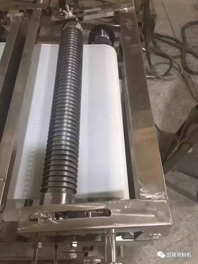 它的造價(jià)不貴,一般配用于中小型機器,裝在蒸箱出粉口的位置,它是屬于熱切,就是粉剛熟于出粉口時(shí)經(jīng)過(guò)直刀的轉動(dòng)切成河粉條狀,直刀切粉寬的尺寸可以訂做在6mm到20mm,一把直刀就只有一個(gè)切粉的寬度,如果家里做粉大小有很多種的,需要多訂做幾把直刀備用。直刀可切分河粉,陳村粉,涼皮,紅薯粉等,藍隆機械小型號的河粉機上配置有擺收粉品的功能,那大大減少了工作人員撿粉的時(shí)間和勞動(dòng)力。